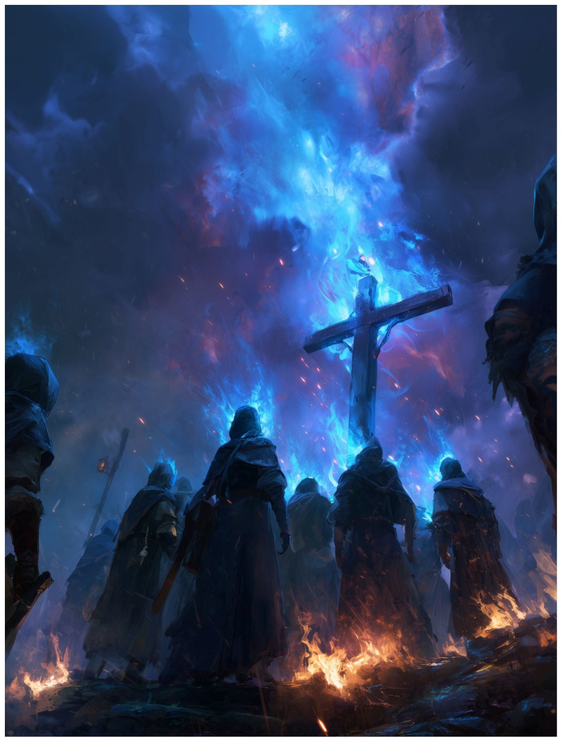 ⁂На небе проносились красноватого оттенка облака, а под ними на холме стояли братья Христовы. Их одежда горела, и языки пламени облизывали им лица, но они словно не замечали этого. Сотни слуг Господа продолжали охранять ковчеги, не сдвигаясь с места. Но и Святыни были объяты синим пламенем, возвышаясь над всеми, словно маяки.