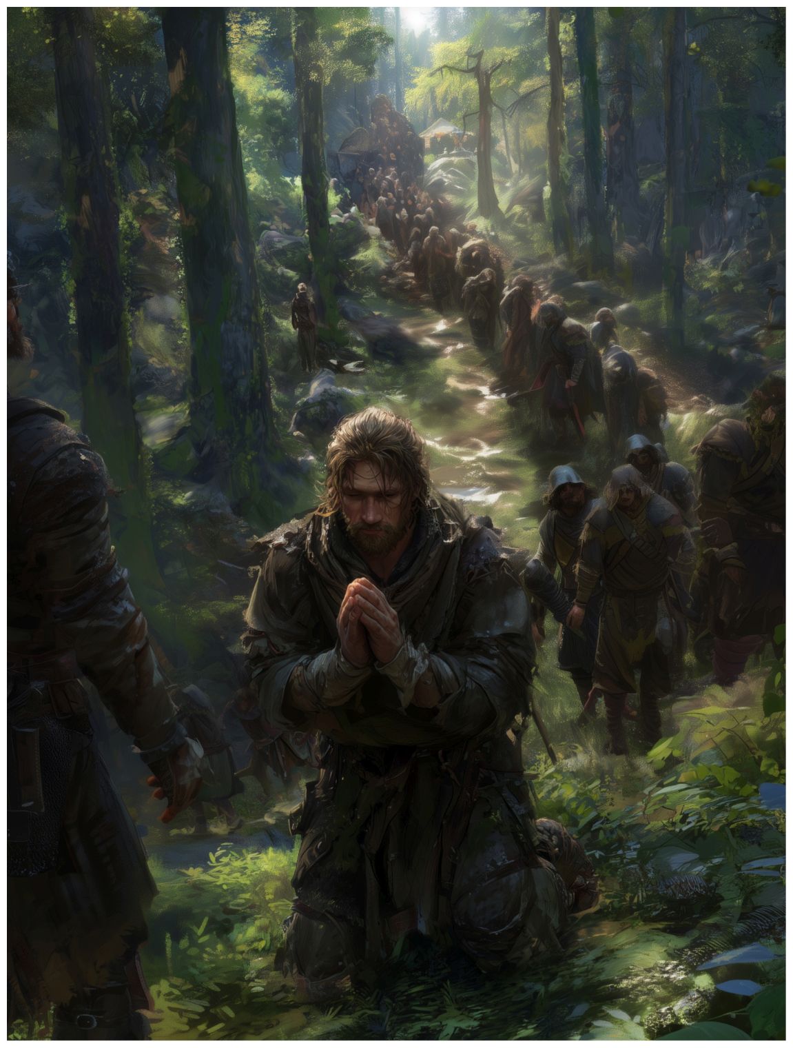 Но никто не решался спросить у самого отца Верилия, и это продолжалось, пока неожиданно на пути этой процессии не оказался мужчина, сидевший на земле в стороне и опустивший голову. Верилий не мог пройти мимо и, сделав пару коротких шагов, остановился. Те, кто шел за ним в первых рядах, так же встали, расставив руки и останавливая других.