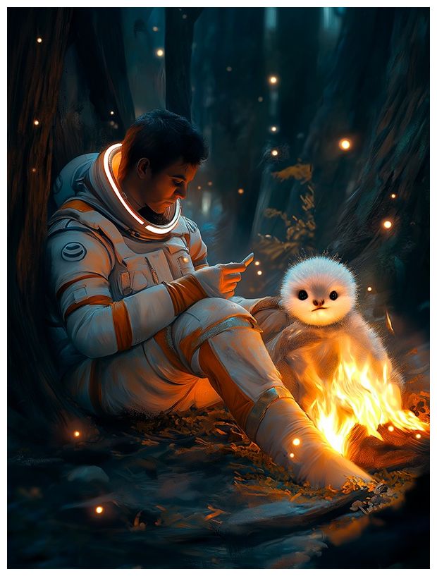 В лесу я ничего не увидел, что может послужить пищей, и единственный вариант – это ручей, где я сегодня наблюдал за рыбами. Вот к ручью и пойду завтра. Я посмотрел на свое копье, набираясь уверенности с помощью него добыть рыбу, и решил, что голод лучше всего переждать во сне. И уже хотел укладываться, как из темноты проступил знакомый силуэт.