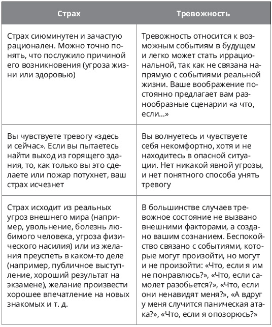 В таблице на следующей странице вы можете увидеть различия между оправданным страхом и нездоровой тревожностью.