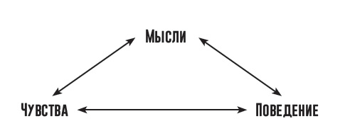 Изменение одного из аспектов приведет к изменению двух других. Меняя свои эмоции (например, когда вы учитесь успокаивать свой страх и тревогу во время каких-либо социальных взаимодействий), вы, вероятнее всего, измените и свое мышление («Я могу полноценно вести беседу, когда справляюсь со своим волнением, и собеседник это оценит»), и поведение (перестанете избегать общения с людьми). Другими словами, если вы стремитесь к изменениям, начните с любого из углов этого треугольника.