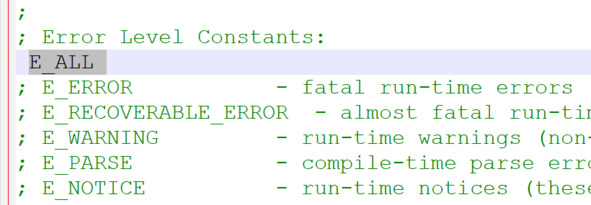 Найдите error reporting, удалите точку с запятой перед E_ALL и удалите весь текст после E_ALL на той же строке.