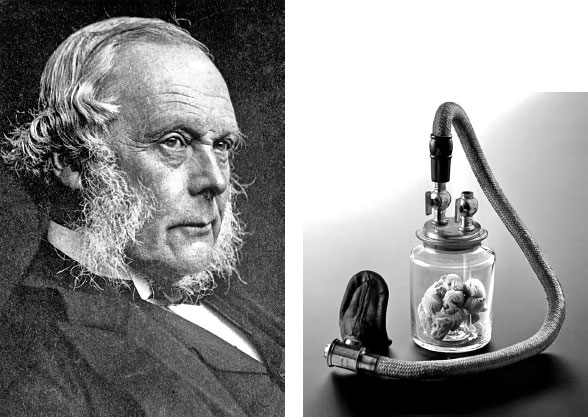 Рисунок 1.2: А. Джозеф Листер. Б. Диффузор карболовой кислоты.