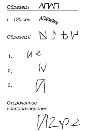 После первого, второго и третьего предъявлений ребенок рисует меньше фигур, чем после паузы, то есть в отсроченном (без показа) воспроизведении.