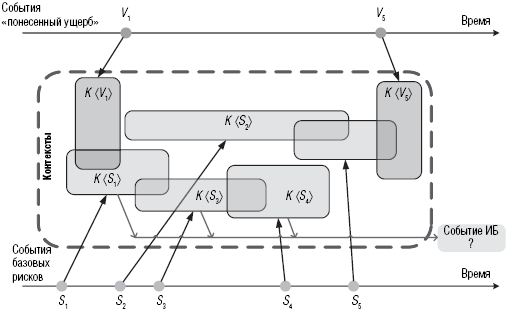 Очевидно, что для более осмысленного и качественного реагирования на базовые риски организации необходимо отобразить на них информационную сферу организации. Однако прямое отображение информационной сферы на базовые рисковые события либо крайне затруднительно, либо вообще невозможно. Причина этого разрыв как семантический, так и формальный, а также и временно й между содержанием и формой представления событий в информационной сфере организации и конечным продуктом (целью) ее деятельности.