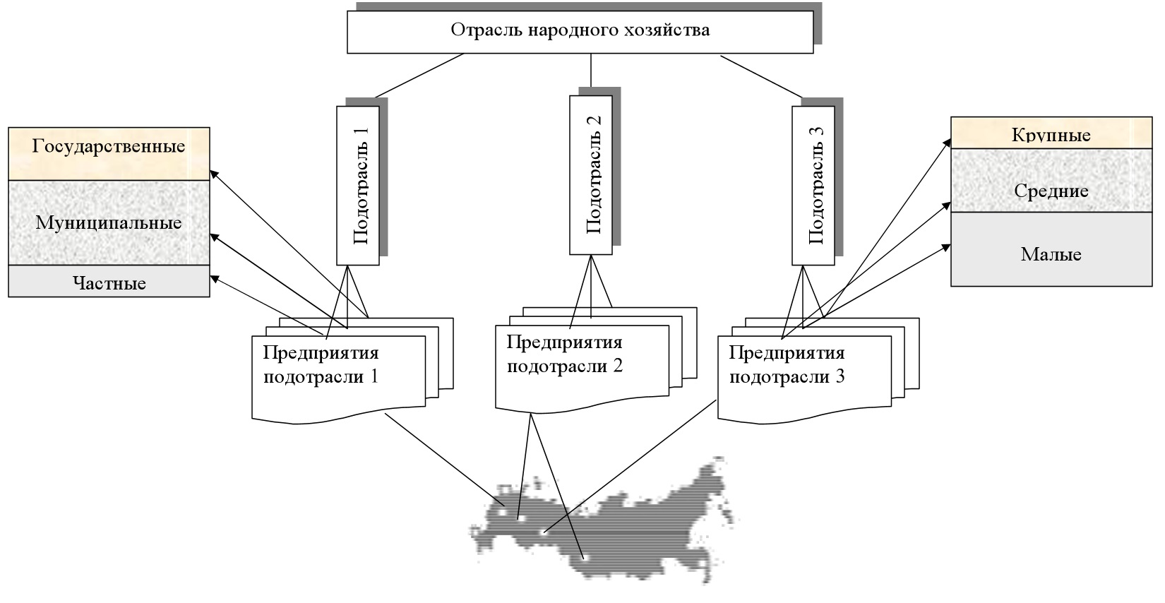 Кроме того, структура отрасли определяется размером, концентрацией, формой собственности и размещением отраслевых предприятий.