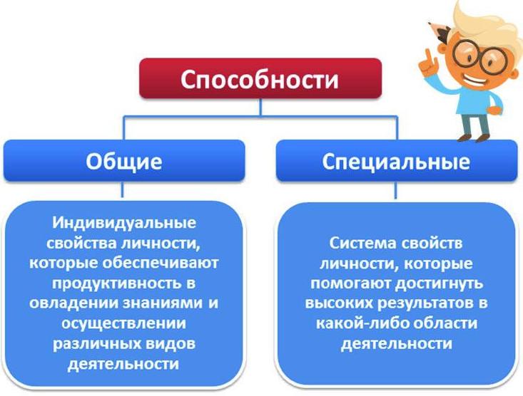 Способности же понимаются как индивидуально-психологические особенности личности, которые являются условиями успешного осуществления деятельности и динамики овладения знаниями, умениями и навыками. Способности делятся на две группы, неразрывно связанные друг с другом (рис. 1.1) [9, с. 38].