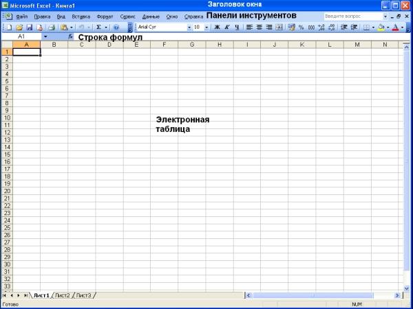 2. Электронная таблица (собственно рабочая область окна MS Excel).