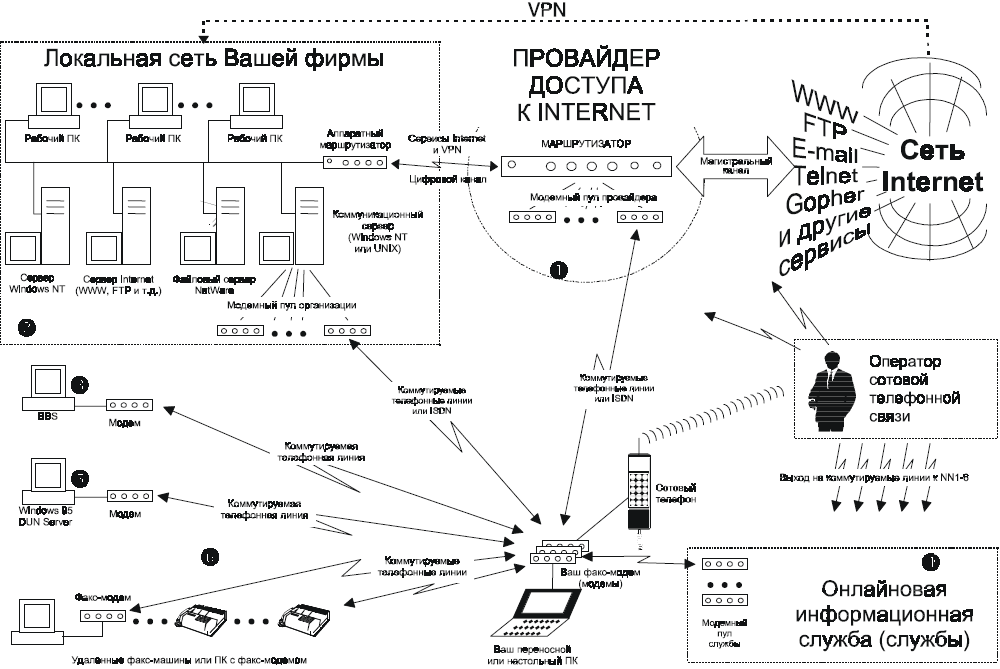 Рис. 3.1. Коммуникационные возможности удаленного пользователя Windows 98