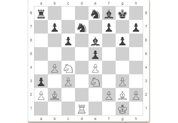 Если забрать пешку конём, чёрные будут морочить соперника, однако белые добьются ничьей. Однако Ларсен отказывается брать «пешку-гвоздь» на этом и следующем ходах.