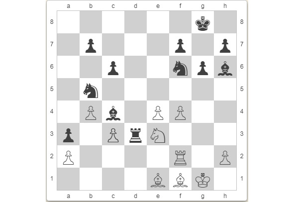 Позиция белых – тот ещё кошмар: белый король практически в одиночку пытается спрятаться от чёрных ладей и слонов.