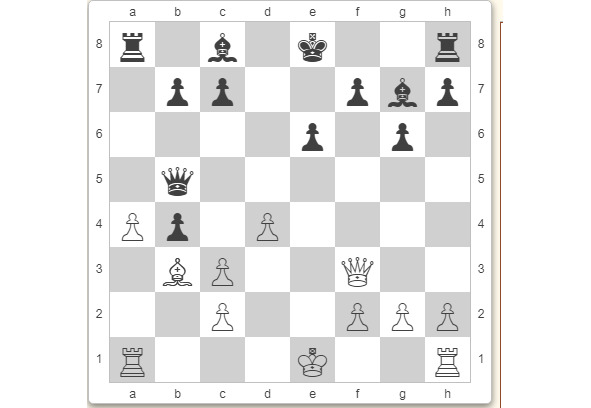 У белых проблемы: на их солдата «е» давят, вдобавок чёрный конь готов прыгнуть на d7, и тогда солдату на b6 будет жутко.