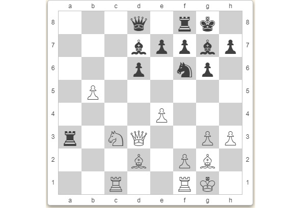 Возня вокруг солдата на b6 продолжается. Белые защищают его, чёрные пытаются забрать в плен. И пока что на доске клинч – соперникам не удаётся нарушить равновесие («равновесие скрещенных шпаг», говоря языком С. Глигорича – гроссмейстера, «староиндийца» и автора книги «Играю против фигур»).
