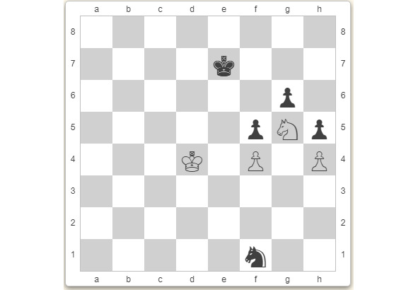Типичный клинч: чёрный конь не может добраться до пешки h, белому королю негде прорываться.