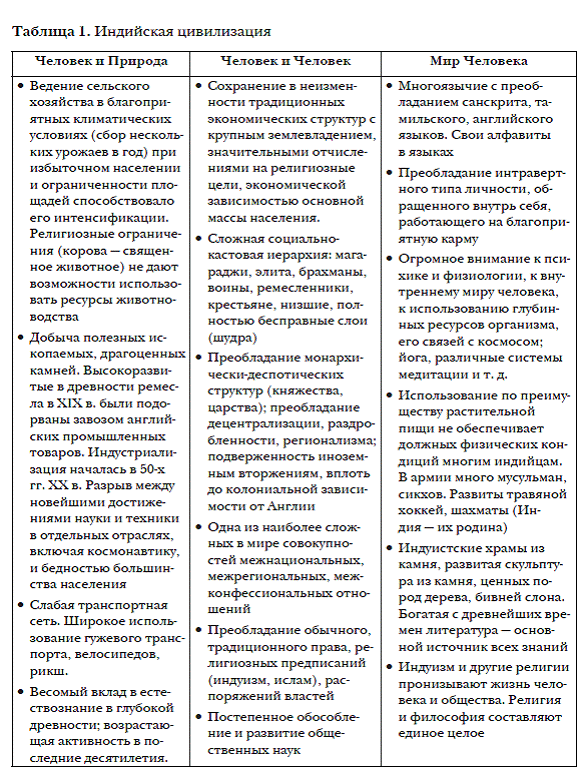 Чрезвычайный интерес представляет древняя индийская цивилизация. Природные условия Северной Индии были весьма похожи на природные условия Египета или Вавилонии. Здесь плодородие почвы, жизнь людей зависела от разливов Инда или Ганга. Южная Индия была богата лесами, драгоценными металлами и камнями. Если Ближний и Средний Восток были открыты внешним влияниям, то Индия была отделена от окружающего мира Гималайским хребтом, морями и океаном[18].