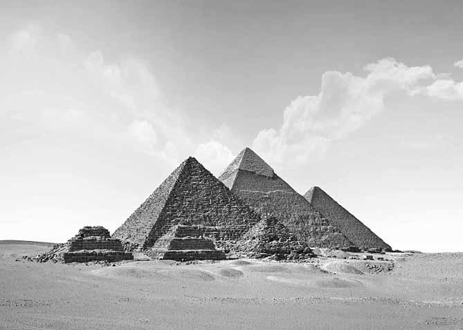 Формат данной книги не позволяет вдаваться в детали, но стоит обратить внимание на некоторые инновационные идеи Имхотепа. Во-первых, созданная им пирамида была первой в Египте монументальной каменной постройкой. Ранее в этой местности строили погребальные сооружения, которые называли «мастабы» (слово «масштаб» произошло именно отсюда). Имхотеп построил над основной мастабой еще несколько поменьше. Возникла новая архитектурная традиция Египта. Во-вторых, Имхотеп изготовил из камня те элементы и части зданий, которые до него делались из кирпича и других материалов. В-третьих, реализовалась достаточно сложная строительная технология. Сначала использовались камни небольшого размера, потом размер каменных блоков постепенно возрастал. На заключительном этапе строительства пирамиду облицевали блоками белого известняка. Имхотеп разработал способ кладки из тесаного камня. В-четвертых, была создана погребальная камера, к которой вели шахта и коридоры с различными ответвлениями. Высота сооружения составила 60 метров, а стороны основания были размером 118 на 140 метров. Пирамида имела форму лестницы, по которой фараон взошел на небо. Некоторые исследователи считают, что свою форму пирамиды получили от большой кучи пшеницы, мастерами выращивания которой были древние египтяне (поминальный пирог, по другим предположениям, имел такую форму).