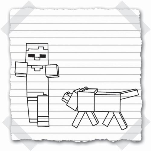 Когда я утром выполз из кровати, у меня по-прежнему все болело. Хвост Гудини волочился, и он скулил каждые несколько минут. Нам нужна была еда! (Я выяснил, что еда – лучшее лекарство в «Майнкрафте».) Я знал, что могу взять пару морковок, но не знал, чем накормить Гудини. На страничке о приручении волков говорилось, что собак лечит мясо, но у меня его не было (даже протухшего).