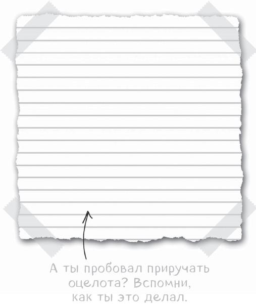 Где-то после четвертого раза мне в голову стукнула мысль, словно ветка по лицу: Я НИКОГДА не поймаю оцелота, если буду за ним гоняться. Надо ловить его, как рыбу, – надо его как-то приманить к себе. Мне нужен план, чтобы приманить оцелота, не напугав его. (И чего он вообще так пугается – я же совсем не страшный!)