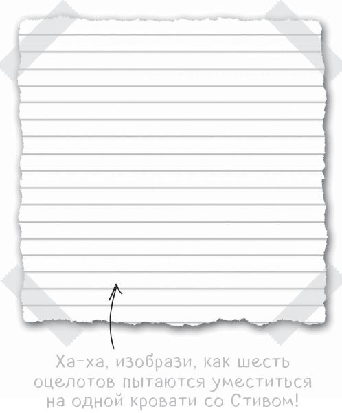 И тут я подумал – а что если приручить нескольких оцелотов сразу? У меня ведь даже была с собой рыба. Но примерно полсекунды спустя я пришел в себя. Во-первых, я не хотел превратиться в безумного кошатника вроде моей тети Эдны. Но главное, я НЕ СОБИРАЛСЯ делить кровать с ЕЩЕ ОДНИМ котом! Брр…