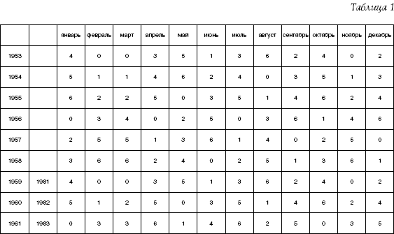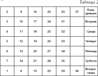 Найдите в первой таблице строку с годом его рождения. На пересечении этой строки и колонки с месяцем его рождения находится цифра. Запомните ее, условно назовем ее «А». Прибавьте к ней дату его рождения: «А» + дата рождения = цифра «В». По этой цифре «В» определите, в какой день недели он родился, воспользовавшись второй таблицей.