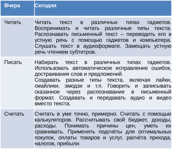 Таблица 1. Функциональная грамотность вчера и сегодня