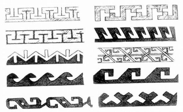 В науке существует мнение о том, что геометрический орнамент был перенесен на керамику из мягких материалов.