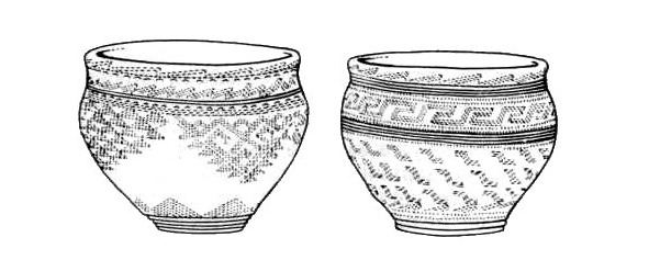 Прежде чем мы обратимся к материалам тех культур, которые сменили трипольскую и ямную в эпоху бронзы, т.е. к возникшим на основе культур шнуровой керамики: праславянской-тшинецко-комаровской и и.-и.-абашевской, срубной и андроновской, хотелось бы отметить, что, как это ни парадоксально, многие орнаментальные мотивы, характерные именно для Триполья и исчезающие в последующих генетически родственных трипольской культурах, сохранились до 20 века без изменений в изделиях северорусских крестьянок. В этом отношении исключительный интерес представляет вологодское кружево 19 века, точнее его крестьянский вариант, не рассчитанный на городского потребителя. В этом виде народного искусства одновременно сосуществовали и геометрический пласт – ромбы, гуськи, свастики, меандр, и плавные, закругленные меандровые комбинации, практически абсолютно идентичные трипольским.