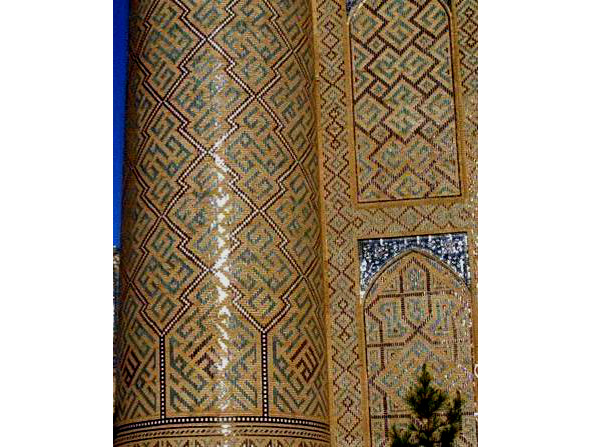 Следует вспомнить и то, что свастика присутствует в декоре Шахи-Зинда (14 век), Биби-Ханум (14 век), Эль-Регистана (15—17 века) в Самарканде.