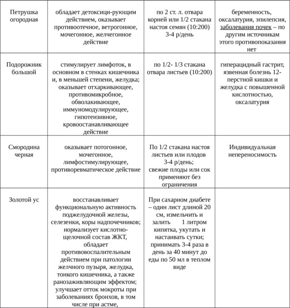 (Примечание: ст. л. – столовая ложка, ч.л. – чайная ложка, р/день – раза в день;
