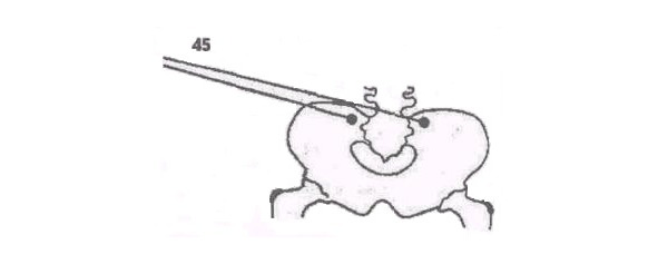 Первая (рис. 1) – парная точка 45, расположена на гребне подвздошной кости в области крестца в месте прикрепления ахиллова сухожилия.