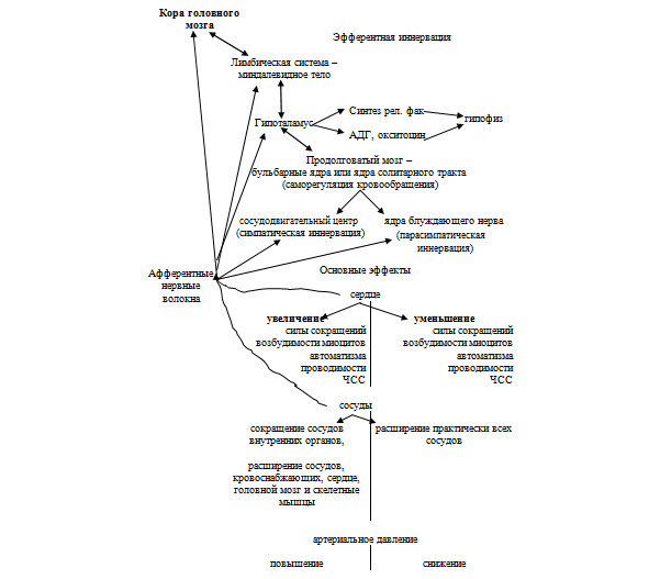 Схема 4. Роль нервной системы в регуляции функциональной активности сердечно-сосудистой системы