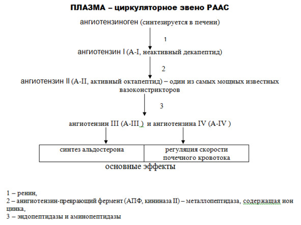 Схема 5. Основные составляющие элементы циркуляторного звена ренин-ангиотензин-альдостероновой системы