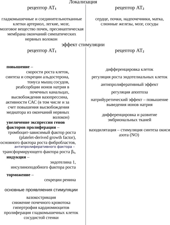 на АТ1 и АТ2 – действует АТ-II, в меньшей степени – АТ-III)