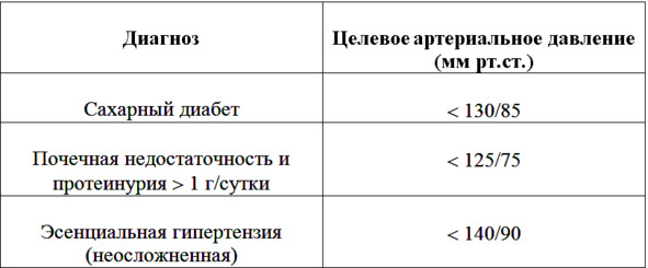 Таблица 6. Целевые значения артериального давления