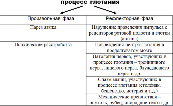 Ниже кратко описано нарушение процесса глотания (схема 2).
