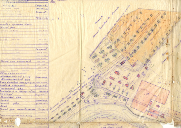 Развернув сложенную в несколько слоёв кальку, я увидела: «Генеральный план с перспективным развитием строительства Ветлужских Судоремонтных Мастерских» (далее просто Ветлужские СРМ, орфография прежних лет).