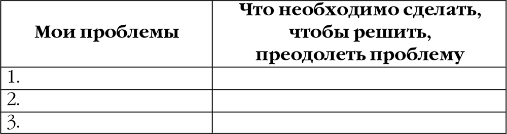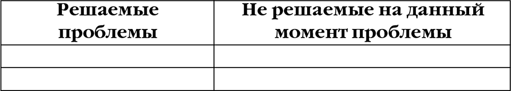 С решаемыми проблемами все понятно, единственное, не стоит затягивать их решение. Не решаемые на данный момент проблемы необходимо отложить на непродолжительный срок, чтобы вернуться к ним и найти решение. Для удобства решения проблемы ниже представлена таблица 11.