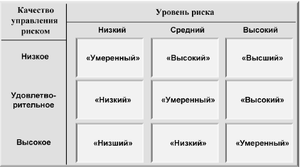 Суть подхода от описанных выше различий в классификации рисков не изменяется и заключается в попытках качественного оценивания, точнее сказать, описания степени или «серьезности» возможного финансового ущерба, который может быть нанесен коммерческому банку. При этом вводятся от трех до пяти градаций степени или уровня оцениваемого риска. Ниже приведена таблица определений уровней агрегированного риска, устанавливаемых в указанных источниках по двум «осям координат» – оценок уровней типичных банковских рисков и качества управления этими рисками (табл. 2.1).