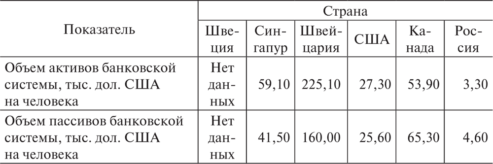 Таблица 1.3 Показатели развитости финансовой инфраструктуры некоторых стран[14]