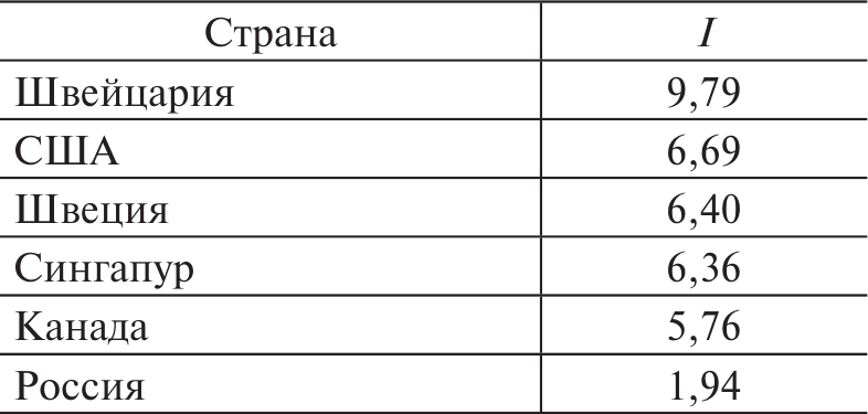 Значение предложенного коэффициента для стран, в наибольшей степени приблизившихся к становлению информационного общества, а также для России представлено в табл. 1.4.
