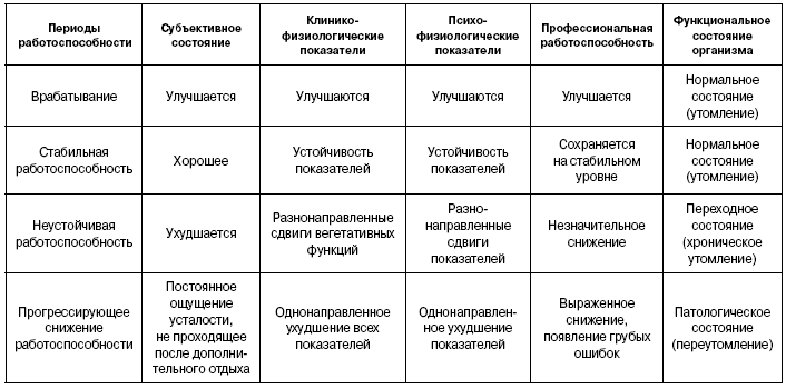 Стадии физической работоспособности (Солодков А.С., 1995)