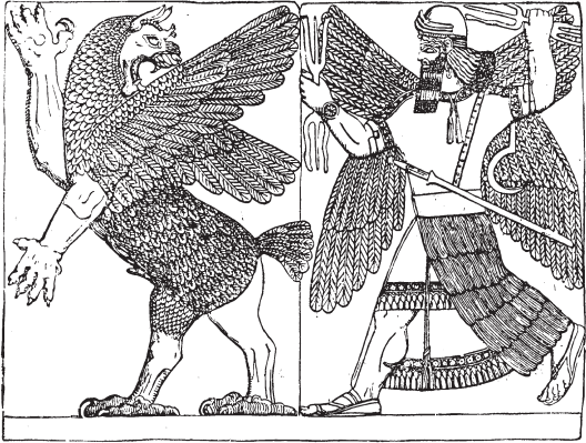 Сохранился миф вавилонян, возникший ещё у шумеров. Он рассказывает о сотворении мира. Первоначально не было ни земли, ни неба, а одно только море. Это море представлялось в виде чудовища Тиамат. В борьбу с ним вступил бог Мардук. Он убил Тиамат и разрезал тело этого водяного чудовища. Одну половину тела чудовища он поднял вверх и сделал из неё небо, а из другой половины сделал землю, море и реки. Затем он разбросал по земле семена растений, из земли создал животных и людей, а потом выстроил храмы и города.
