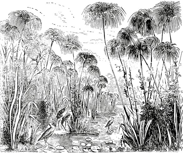 На берегах Нила и его рукавов росли водяные растения – лотос и папирус. Папирус – очень полезное растение. Это тростник, из толстых стеблей которого делали лёгкие челноки, из тонких – плели корзины, вили верёвки; корни его шли на топливо, а молодые побеги употреблялись в пищу.