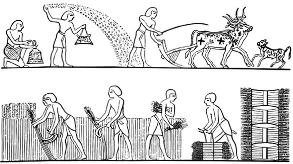 Постепенно земледелие становилось главным занятием египтян. Поэтому и год они делили на три периода по земледельческим работам: время наводнения (июль – октябрь), посева (ноябрь – февраль) и жатвы (март – июнь).