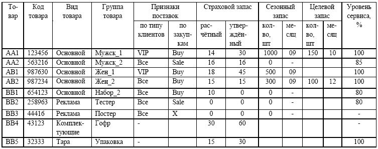 Каждая категория запасов описана в литературе достаточно широко, хотя и неоднозначно. Для логистики важны конкретные рамочные определения по каждой из этих категорий для каждого наименования товара. Составьте и утвердите у руководства матрицу товарной номенклатуры, подобную табл. 1.1.