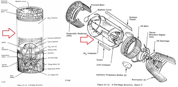 Безусловно, если бы во второй ступени РН «Сатурн-1Б» был этот необычный бак, произошло бы сильное охлаждение поверхности ступени и, как следствие, сильное обледенение. Если этого не произошло, то необходимо признать очевидное, что в этой ступени не было подобных охлажденных контейнеров. В них не было объектов с низкими аномальными температурами, которые вызывали обледенение на боковых баках с окислителем первой ступени. Отсюда второй вывод: вторая ступень ракеты «Сатурн-1Б» была пустышкой. Нет баков с горючим и окислителем, это означает отсутствие двигателей, отсутствие насосов, трубопроводов, иных блоков и оборудования, связанных с работой этих частей ракеты, если бы они были реальными, а не пустышками. Отсюда третий вывод: Так называемый переходник LMA (Lunar Module Adapter), который сокращенно называют «адаптером», был тоже пустышкой. В полете «Аполлон-7», сказочники НАСА декларировали в этом отсеке наличие «ЛМ». Далее следует главный вывод: «Командный Модуль» (КМ) был пустышкой и никаких реальных «космонавтов» США в нем не было. Чистая поверхность второй ступени, свободная от инея и льда выдала действия фальсификаторов. Обледенение в указанном месте должно было быть.