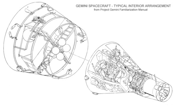 Новая конструкция сильно напоминает предыдущую капсулу «Меркурий». Кардинально ничего не поменялось, даже обшивка на маленьких винтиках, с волнистыми выступами поперек аэродинамического напора, тот же негерметичный первый слой, отсутствие абляционной защиты на боковых поверхностях капсулы. Все перечисленные признаки фальсификации пилотируемого полета из программы «Меркурий» теперь перекочевали в программу «Джемини». Осталось аналогичное отсутствие обтекателя, и защиты капсулы от перегрева при полете ракеты вверх. К этому следует добавить: Исчезла «игла» САС.