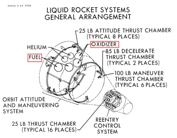 Покраска не единственный признак ужасного качества устройства. Аннотация к увеличенным фрагментам фотографии НАСА: «S65—14459 (24 февраля 1965 г.) – показано, как астронавт Джон У. Янг, пилот основного экипажа „Близнецы-Титан 3“, проводит последнюю проверку систем космического корабля перед тем, как его опустят в воды Мексиканского залива». [5]