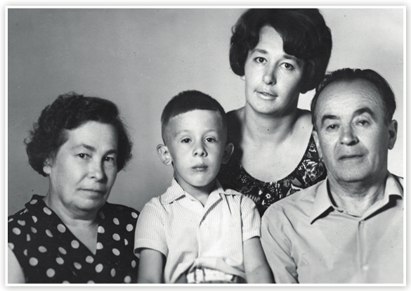 Фото – слева на право: тетя Леля, ее внук Александр, Татьяна Юстиновна и Юстин Васильевич
