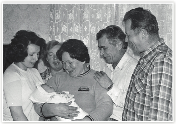 20.09.1978 г. – первый внук Андрей, мама Таня, бабушка Валя, бабушка Люба (держит внука), дед Жора и дед Иван